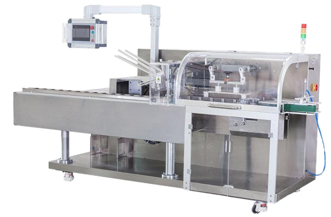 產品主要性能特點:產品按指定排列形式自動裝入紙盒內,單機同時實現開盒、裝盒、封盒全部功能。